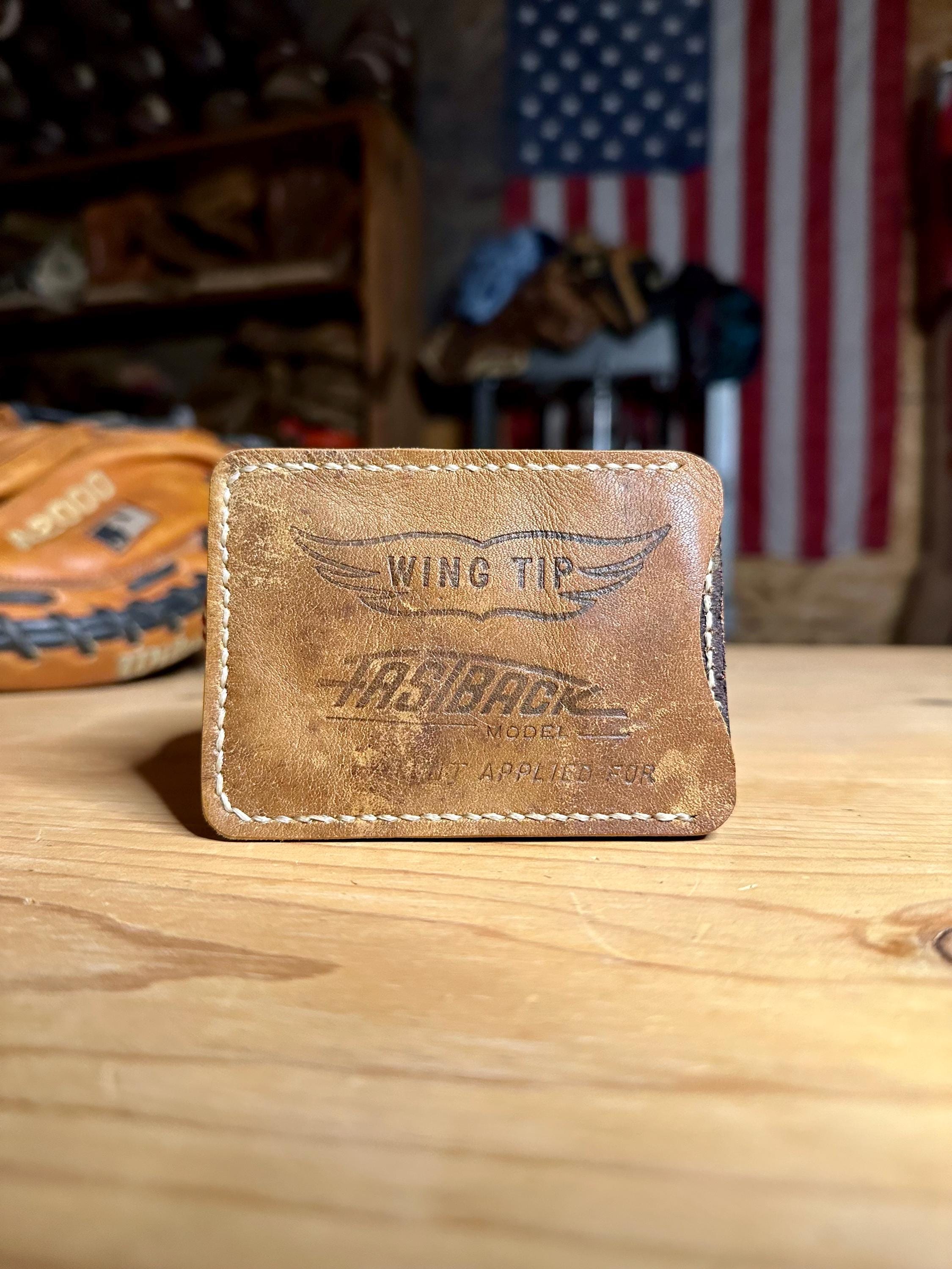 This handmade card holder is crafted from vintage Rawlings baseball glove leather.