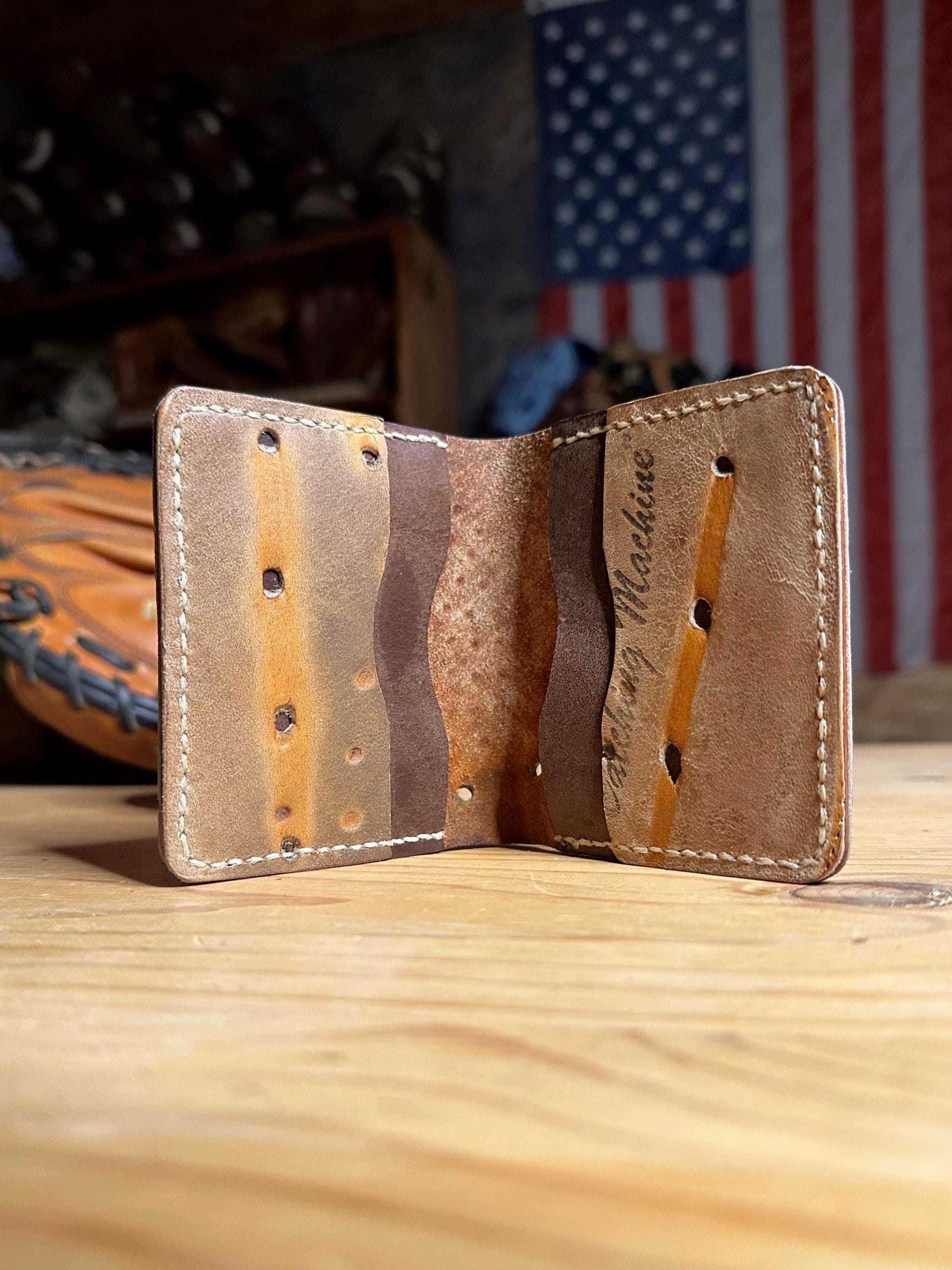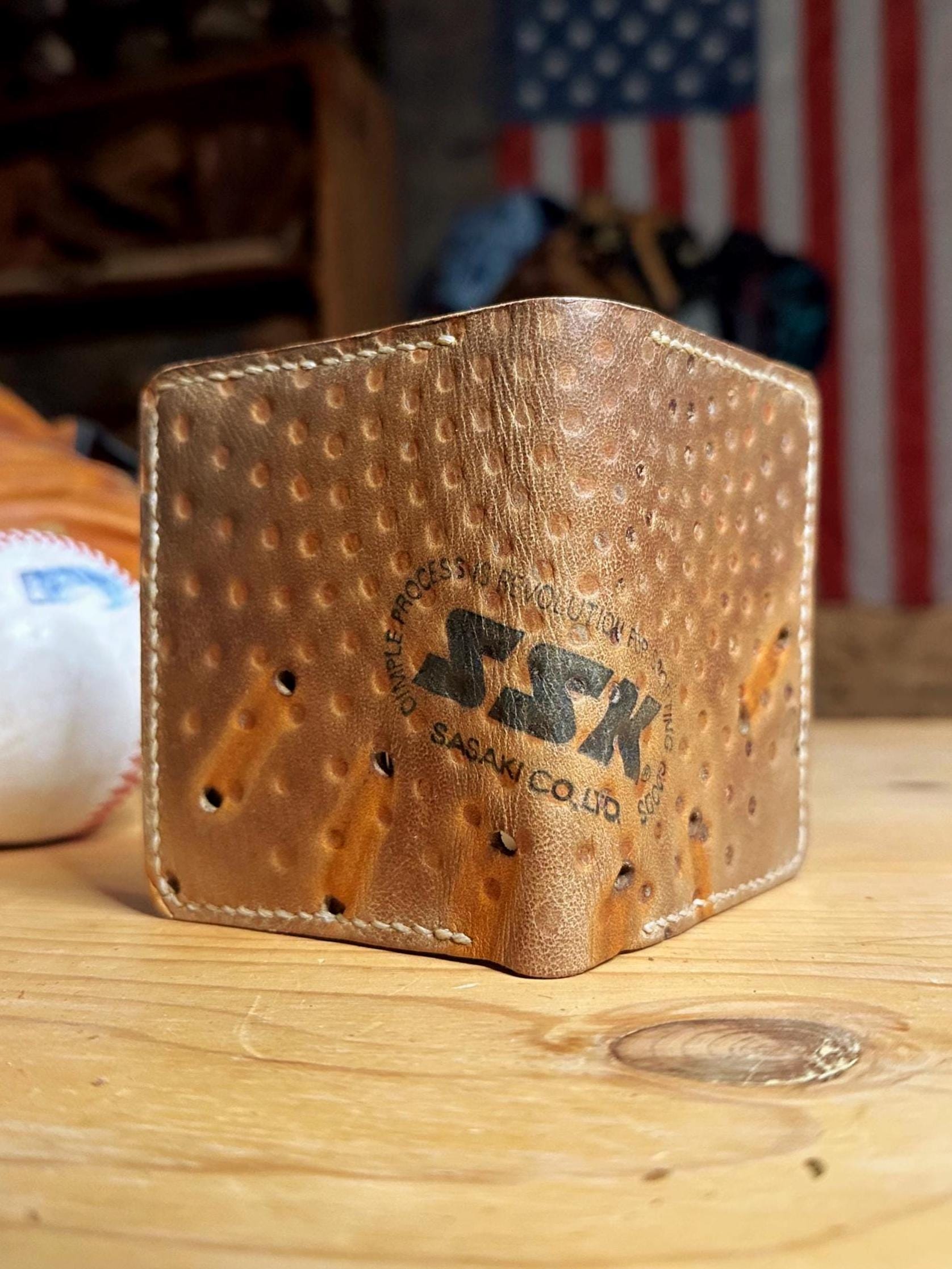 This handmade baseball wallet is made from vintage SSK baseball glove leather.