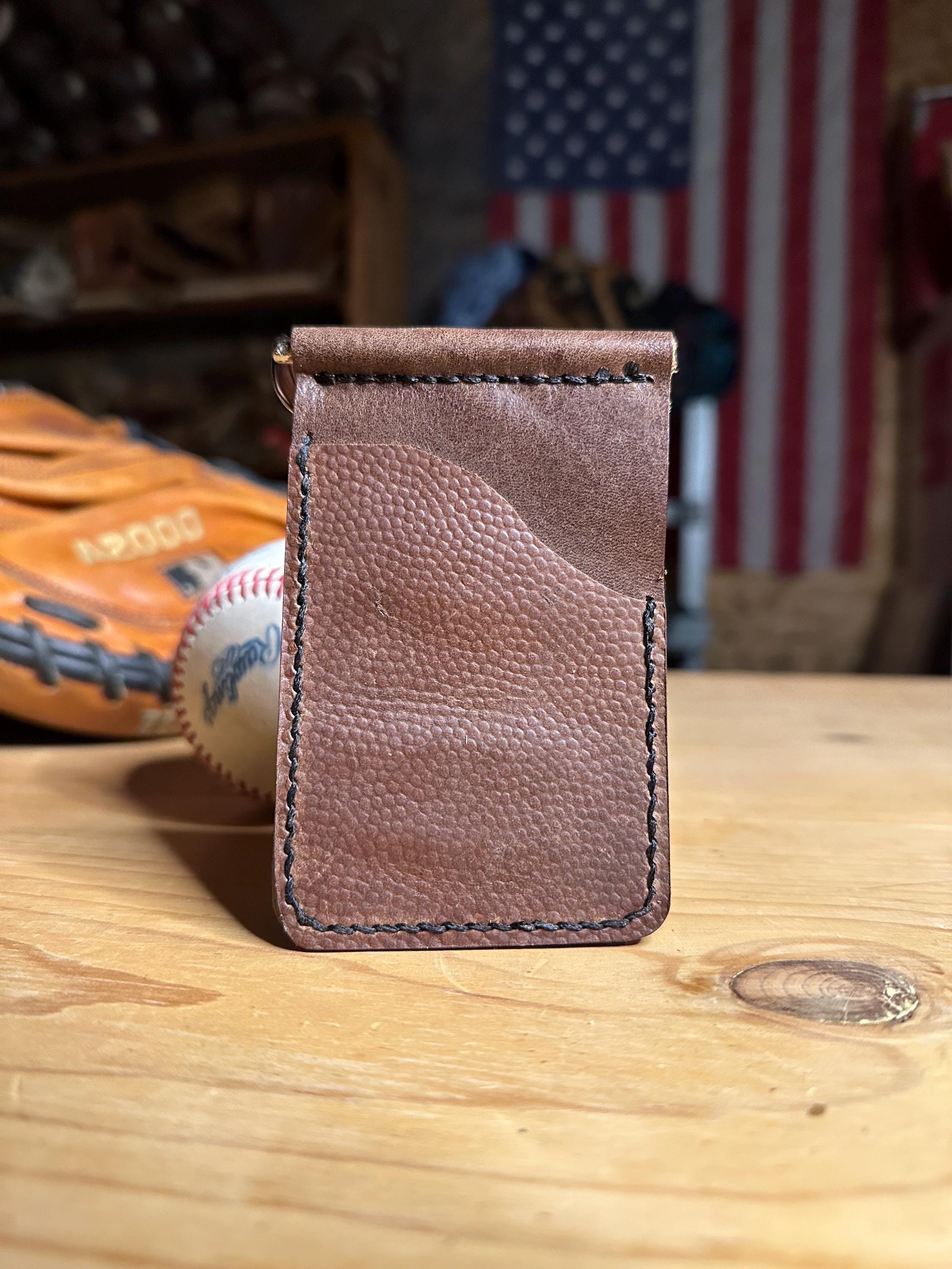 This football wallet with money clip is made using vintage Wilson GST football leather.