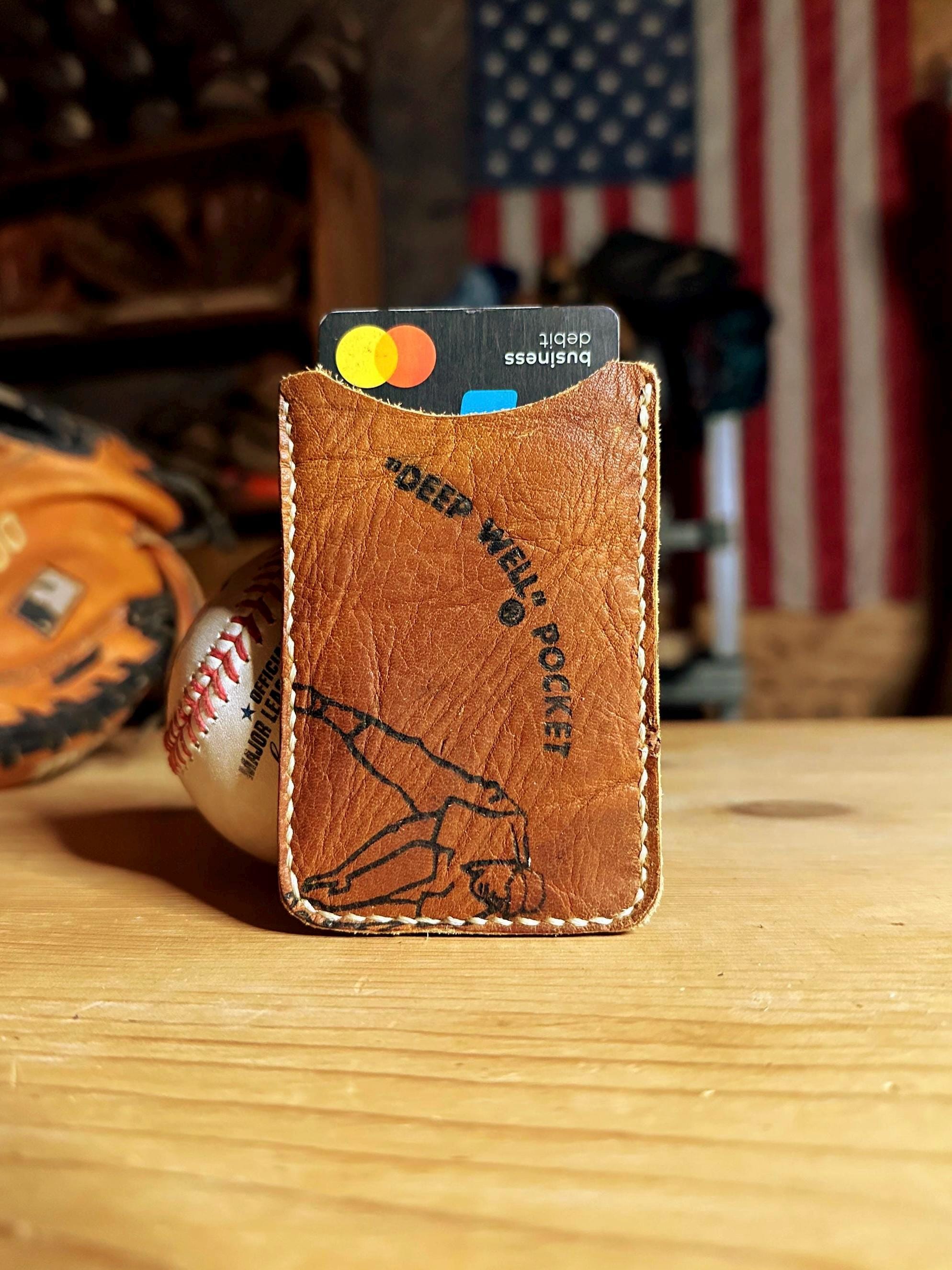 This handmade card holder is crafted from vintage Rawlings baseball glove leather.