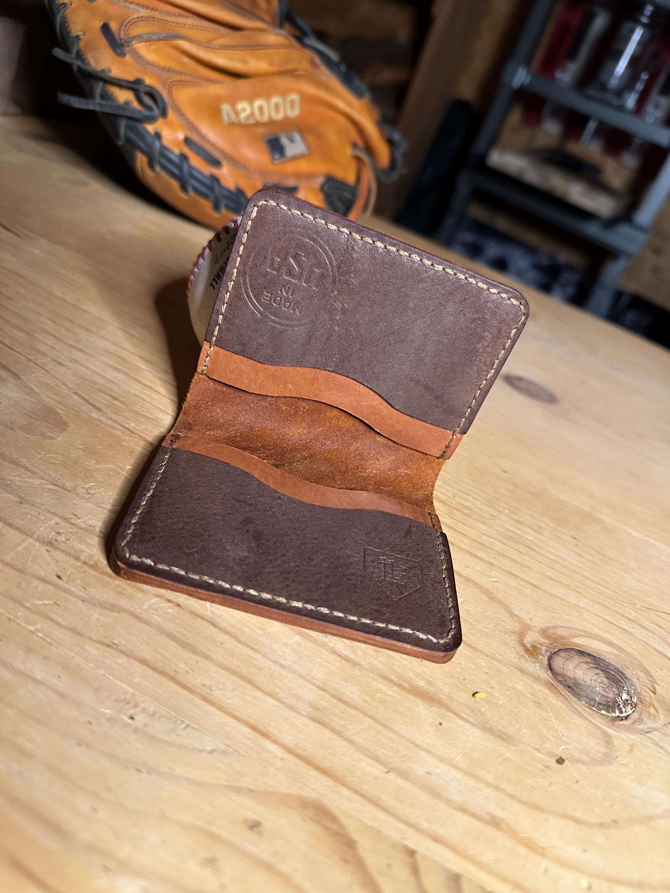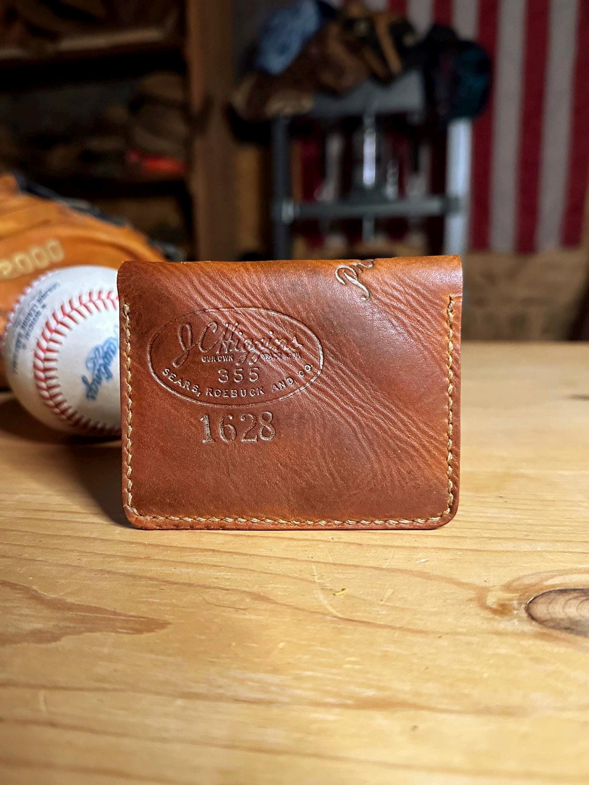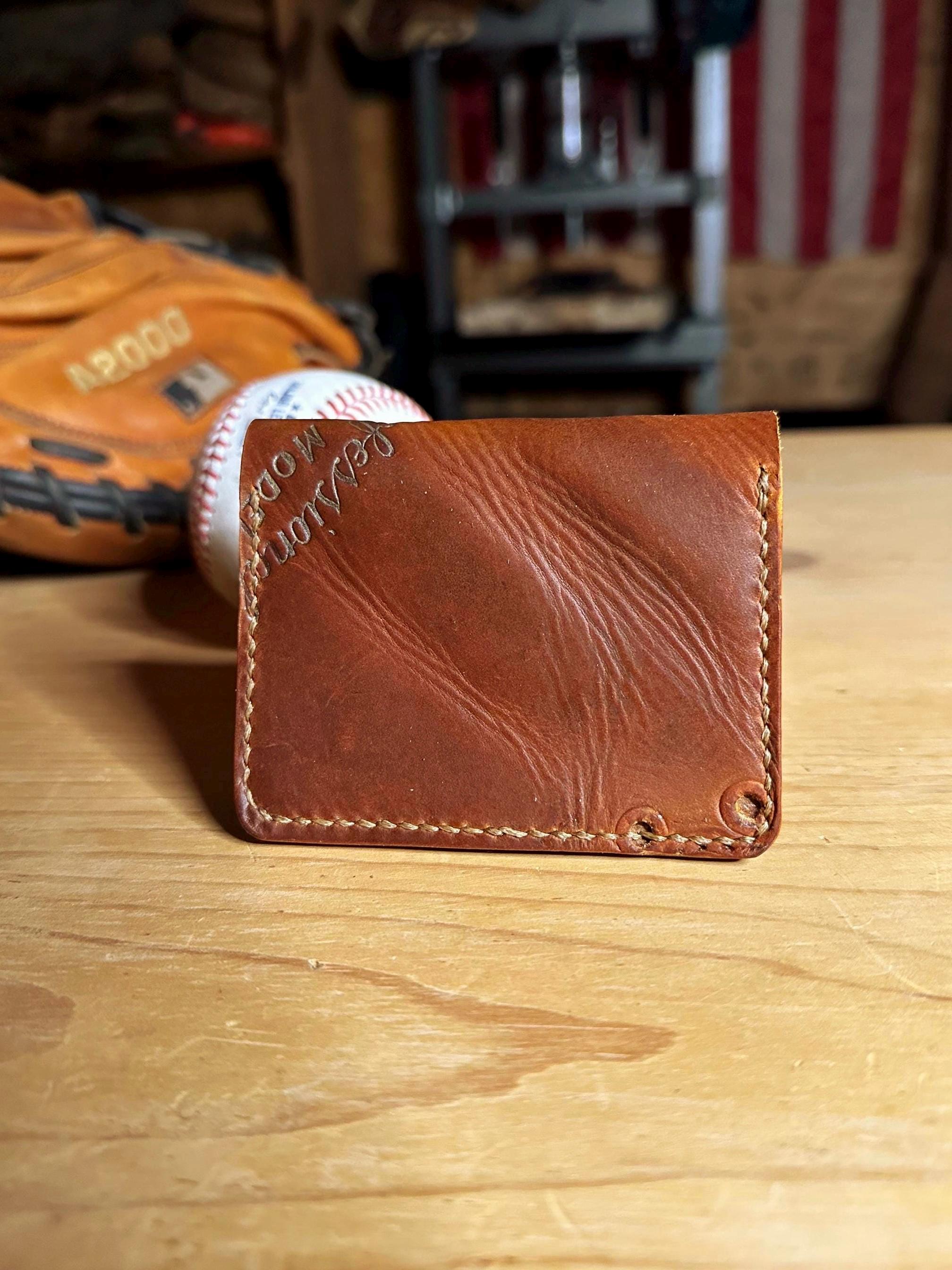 This handmade baseball wallet is made from vintage SSK baseball glove leather.