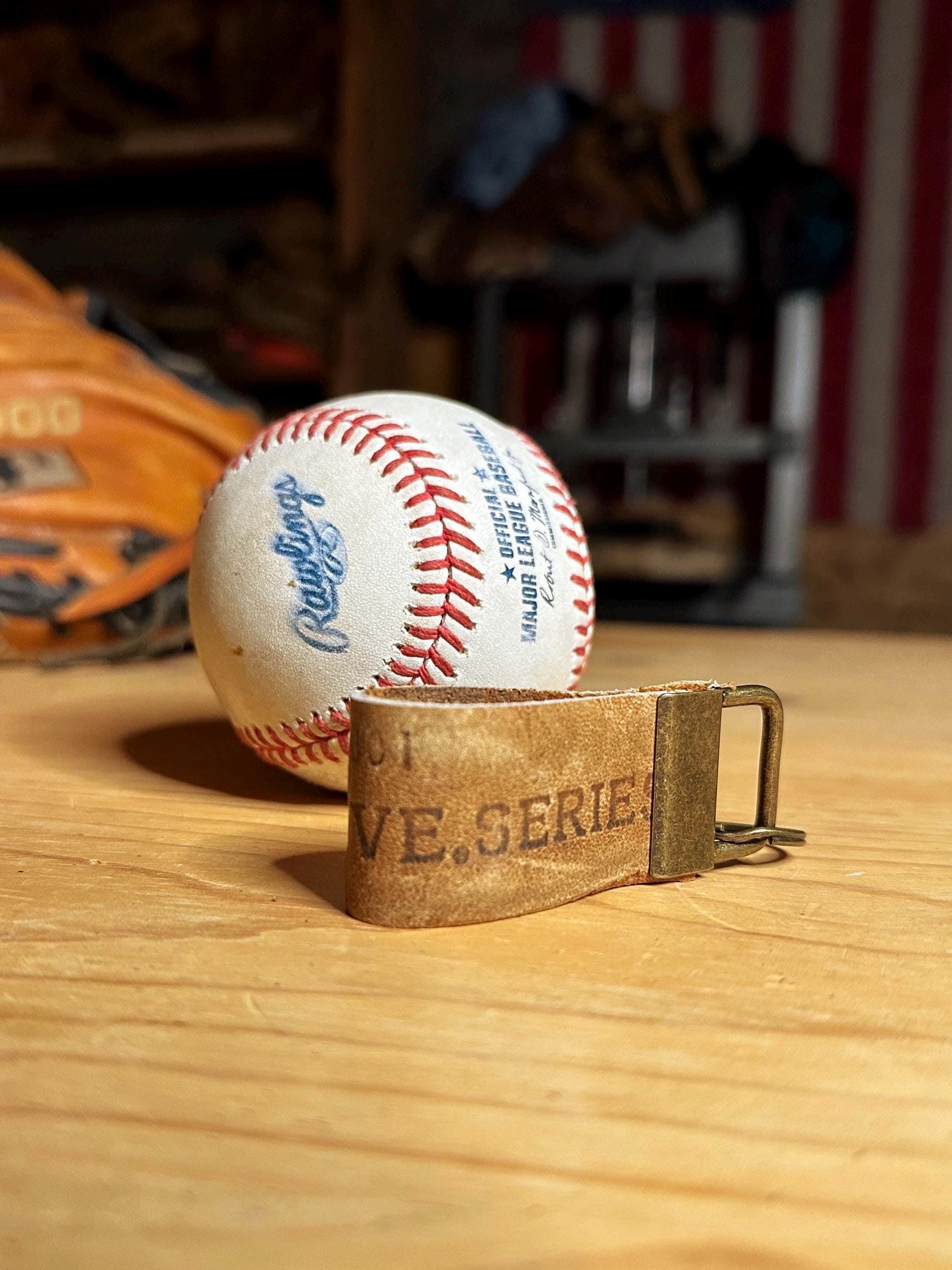 All leather used is repurposed from an old baseball glove.