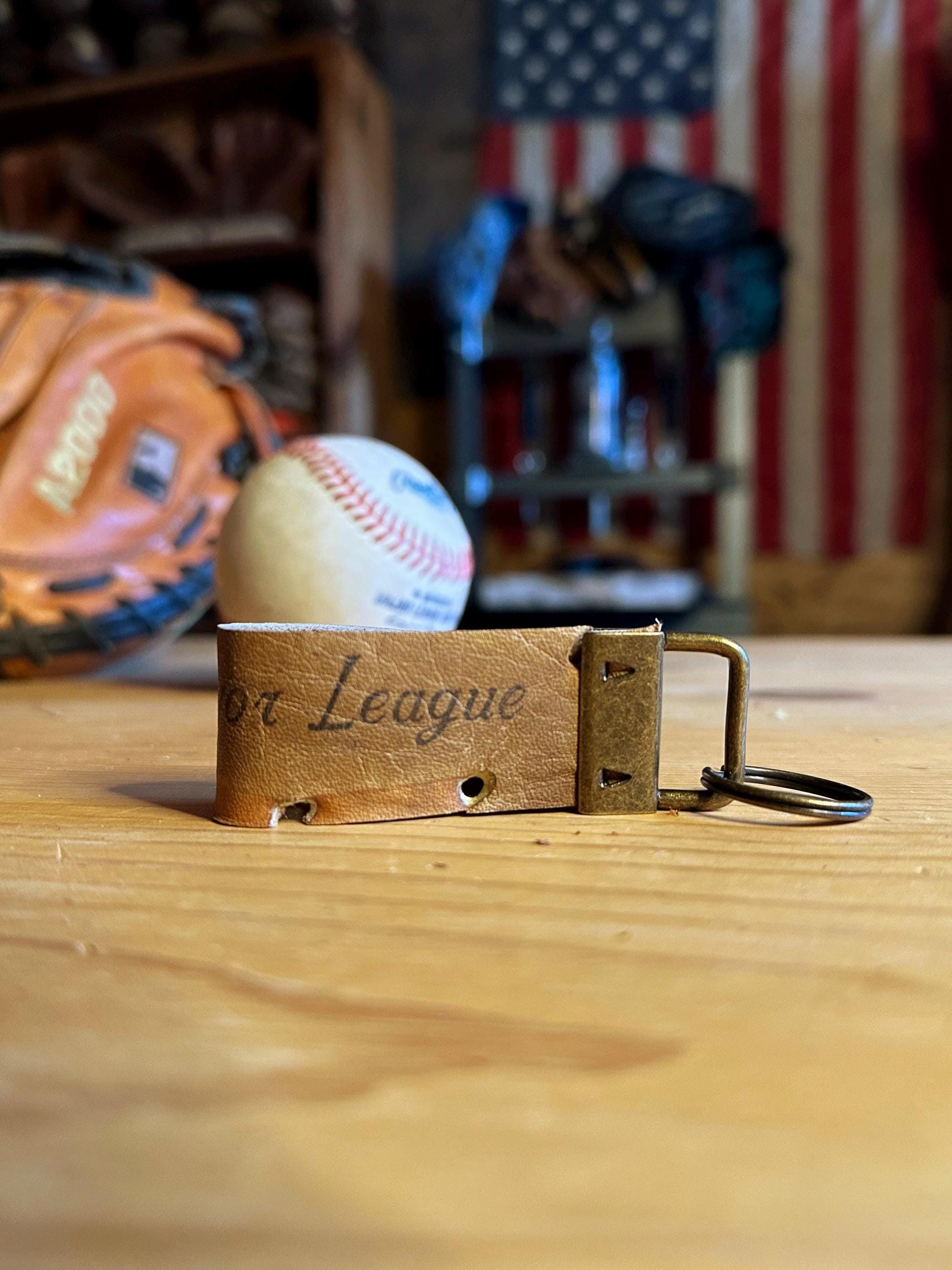 One-of-a-kind keychain made from a vintage Major League baseball glove. Markings are original to the glove.All leather used is repurposed from an old baseball glove.