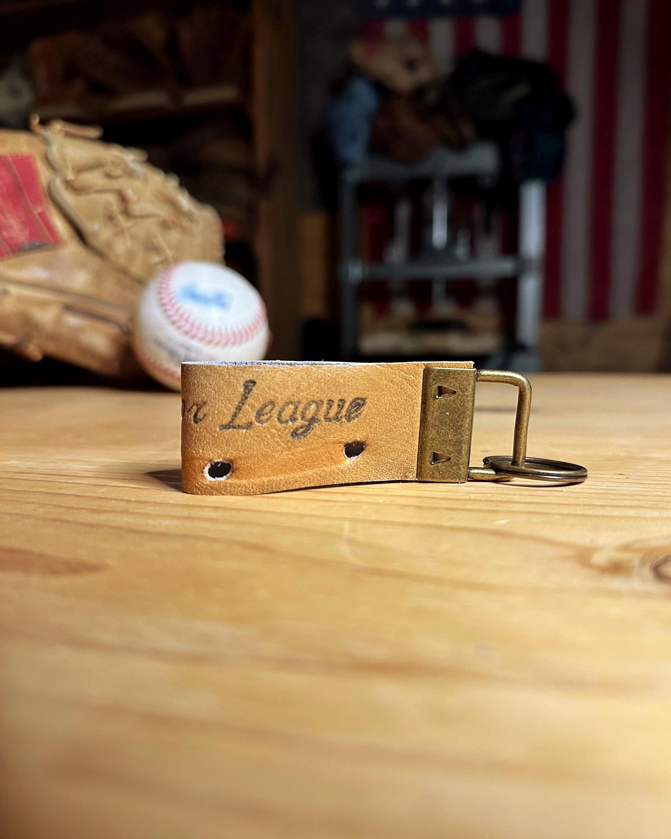 One-of-a-kind keychain made from a vintage Major League baseball glove. Markings are original to the glove.All leather used is repurposed from an old baseball glove.