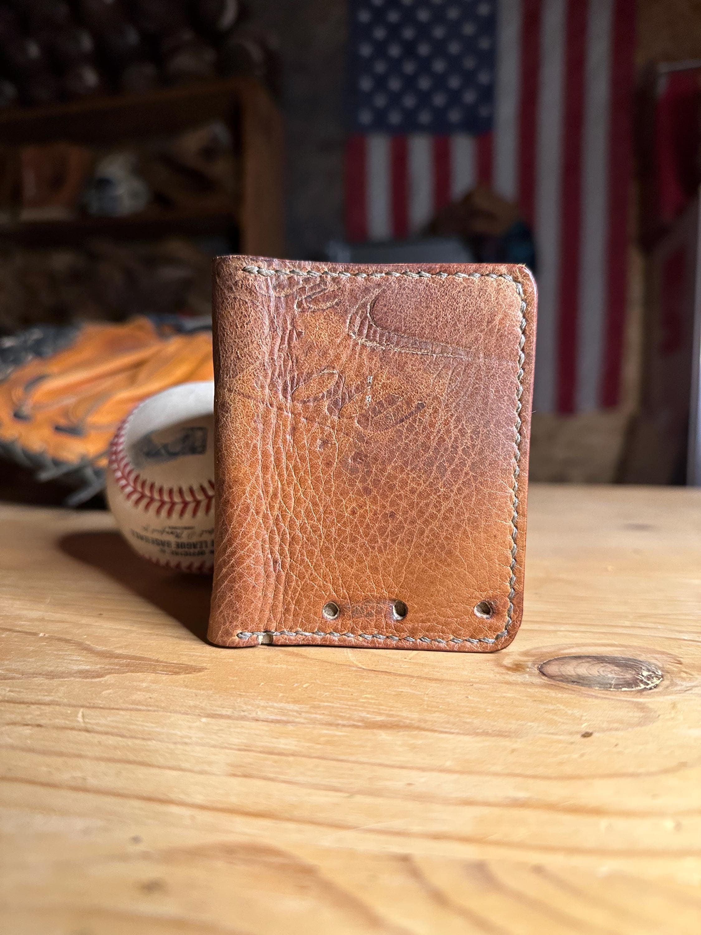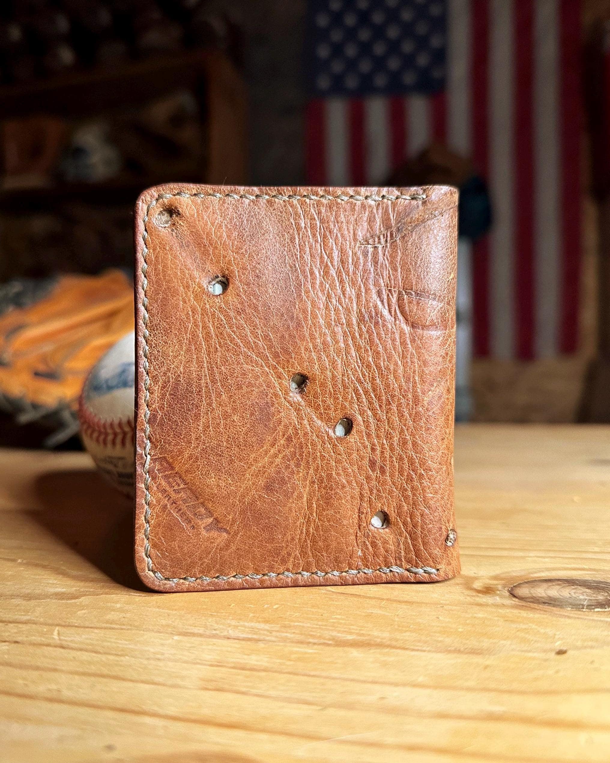 This handmade baseball wallet is made from vintage baseball glove leather.