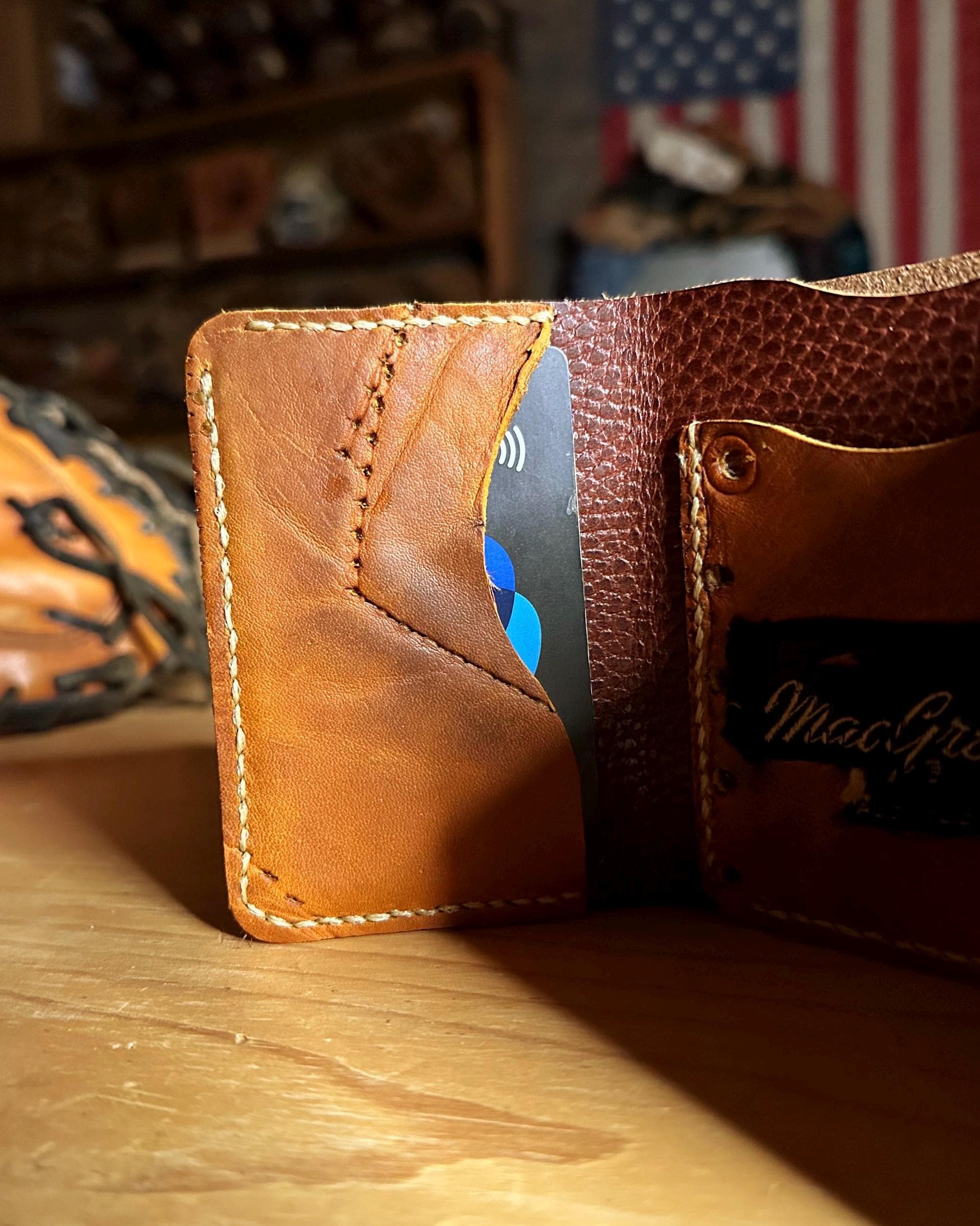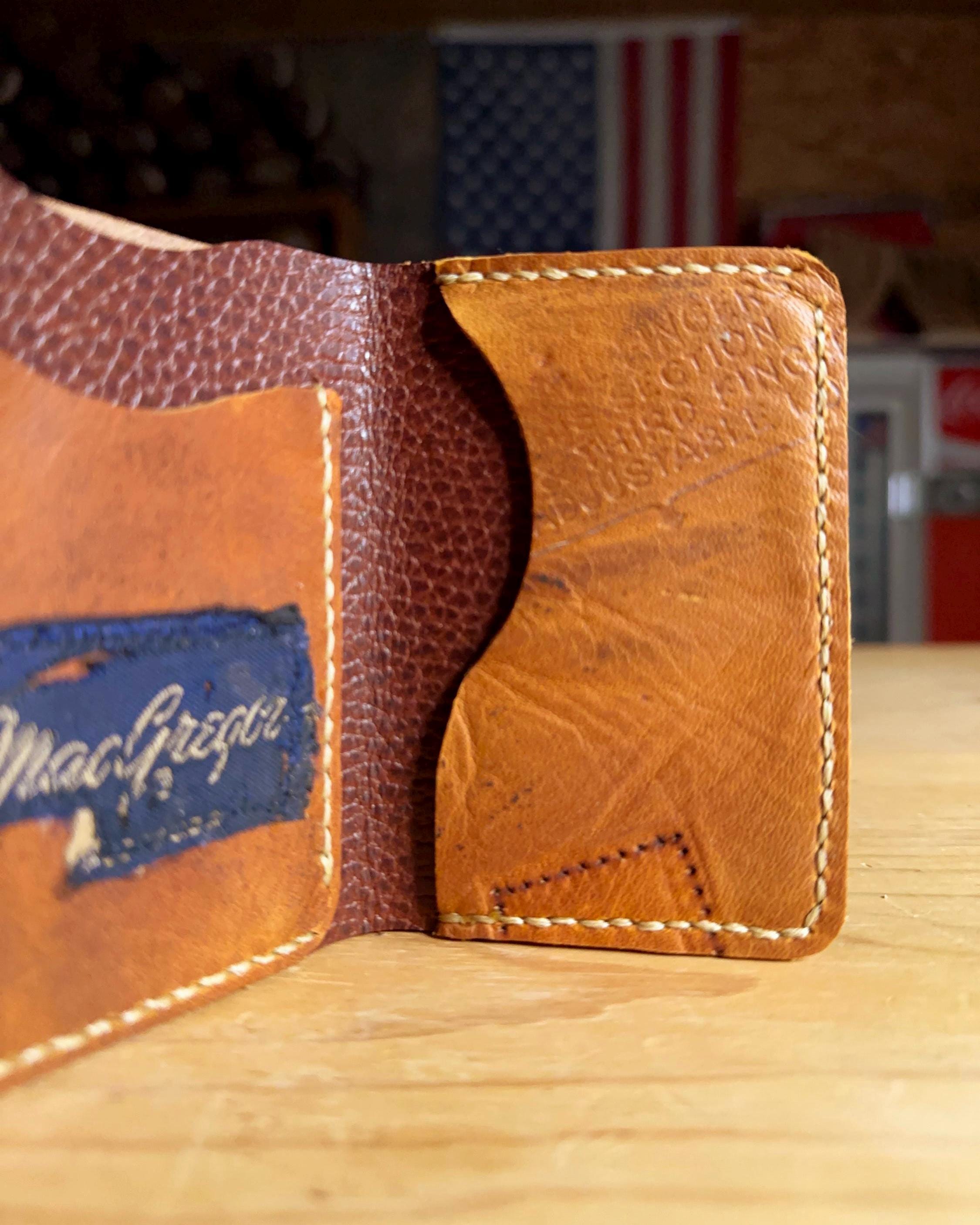 This handcrafted trifold wallet is made from an authentic vintage MacGregor baseball glove, giving each piece its own unique character, patina, and story. Because no two gloves age the same, every wallet is truly one-of-one — once it’s sold, it can never be duplicated.
